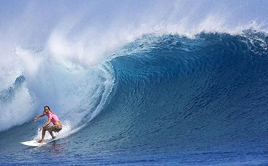 Here is Derek Ho riding a wave in the Air Tahiti Nui/Von Zipper trials at the treacherous Teahupoo. He and 79 other big wave surfers are trying to land one of two wildcards in the Billabong Pro Tahiti contest which begins May 5th and runs until the 17th.